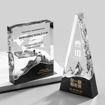 Placa de premio de trofeo de cristal transparente de alta calidad personalizada, trofeo de cristal de mármol pulido creativo, premios de recuerdo de honor