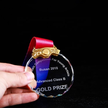 Недорогая медаль из круглого хрустального стекла оптом для спортивных соревнований, студенческий сувенир на выпускной сезон, металлическая медаль