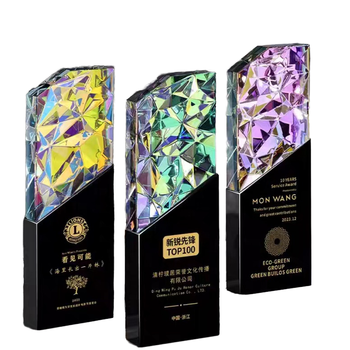 Diseño de trofeo de cristal en blanco al por mayor, premios de Conferencia Anual, Premio de Honor de empleado excepcional personalizado, placa de trofeo colorida