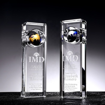 Trofeo de cristal, medalla de globo azul grabada, trofeo deportivo, campeón, venta al por mayor